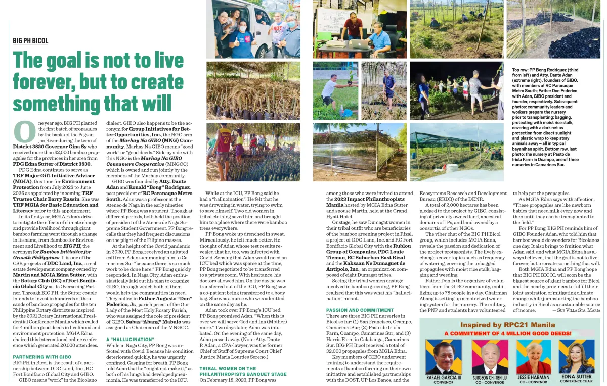 Towards this end, BIG PH (or Bamboo Initiative Grant for the Philippines) was launched at the highly successful Impact Philanthropy Banquet 2023 in February which was attended by the top philanthropists of Philippine Rotary and the heads of business organizations, corporations, youth and organized communities.