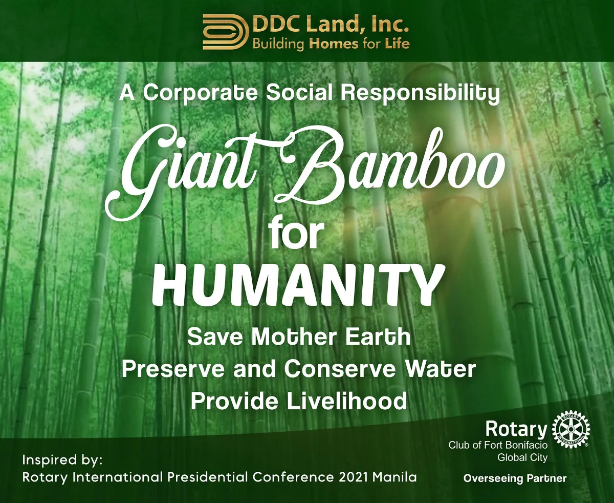 This is only one of many projects of Bamboo for Environment and Livelihood, a Corporate Social Responsibility (CSR) undertaking of DDC Land, Inc., led by its CEO and President, PDG Edna Sutter of District 3830. Through this advocacy, DDC Land and PDG Edna aim to actively distribute hundreds of thousands of bamboo propagules to the Philippine Rotary districts to mitigate the effects of climate change and provide livelihood. It is a project inspired by RPC21 Manila, an online RI presidential conference that attracted more than 20,000 attendees under the chairmanship of PDG Edna. RC Fort Bonifacio Global City, PDG Edna’s club, is the Overseeing Partner of this project.